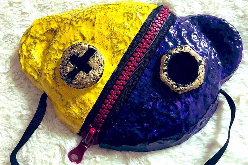オリジナルキャラクター「スージィ」のマスク 実際に装着することが可能 チャック部分で切り離せます